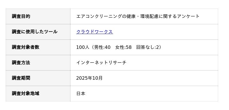 エアコンクリーニングの健康・環境配慮に関するアンケート調査の概要