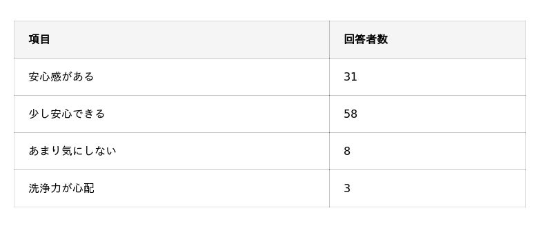 ・エアコンクリーニングで使用する洗剤については「身体や肌へのやさしさ」「ペット・子どもへの安全性」を重視しているが「強力な洗浄力」も両立したい。
