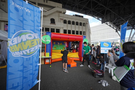 YONEX契約選手によるエキシビションマッチや、キッズ、ジュニア対象のテニス レッスン、サービススピードコンテスト等の来場者参加型イベントを実施。子供が遊べる世界最大級のエアスライダーやアスレチックは終日体験できます!