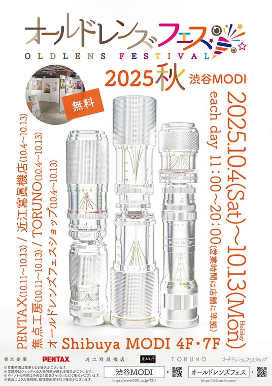 渋谷MODI(モディ)にて10月4日-13日まで「オールドレンズフェス 2025秋」が開催されます。焦点工房も10月11日(土)~13日(月)の3日間出店いたします。