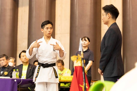 11月に同会場で開催されるデフリンピック(空手)に出場することが決定している小倉涼選手と森健司選手も活躍しました。両選手ともそれぞれのカテゴリで組手と形のダブル優勝。森選手は開会式の選手宣誓も務めました。