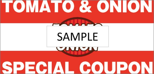 トマト&オニオン公式アプリで会員登録後、配信されるクーポンの番号をお席のタブレットに入力をしてご注文ください。ご利用日当日に会員登録をしていただいた場合も割引適用となります。詳しくは公式アプリ内クーポンの利用条件をご確認ください。