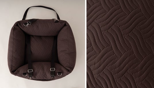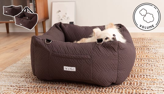 移動中でもリビングのようなくつろぎを叶える、大型ドライブベッド。愛犬用のドライブベッドやドライブボックスには硬い触感が多い中、寝具で使われるボリューミーなクッション量で、寝心地をとことん追求しました。移動中でも愛犬の心地よさを求める方に最適なドライブ用ベッドです。