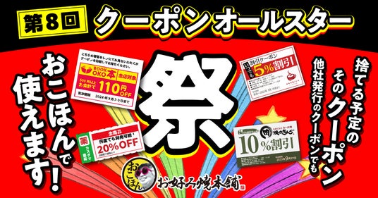 株式会社物語コーポレーション(本社:愛知県豊橋市/代表取締役社長:加藤 央之)は、全国20店舗展開中の『お好み焼本舗』(以下、おこほん)は、「クーポンオールスター祭~捨てる予定のそのクーポン、おこほんで使えます~」(以下「クーポンオールスター祭」)を2025年10月14日(火)~10月31日(金)まで開催します。