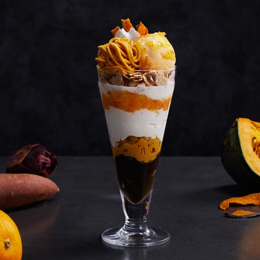 1F ナナズグリーンティー優しい甘さのかぼちゃあんを使用。瀬戸内オレンジソースの爽やかな香りを楽しめる秋スウィーツ