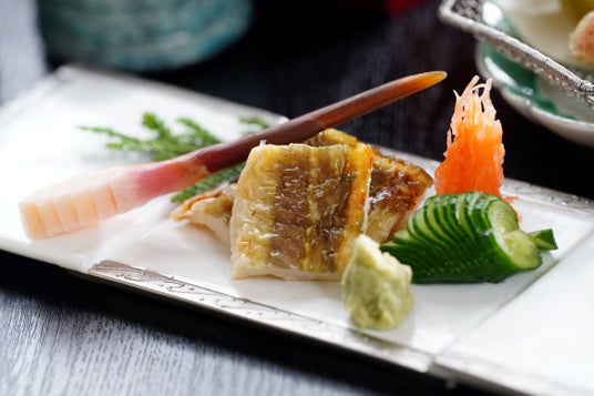 丁寧に干し上げた穴子を、香ばしく焼き上げてご提供。噛むほどに広がる旨みが印象深い一品です。島根県産わさびは、辛みの中に甘さとまろやかさを感じる逸品です。