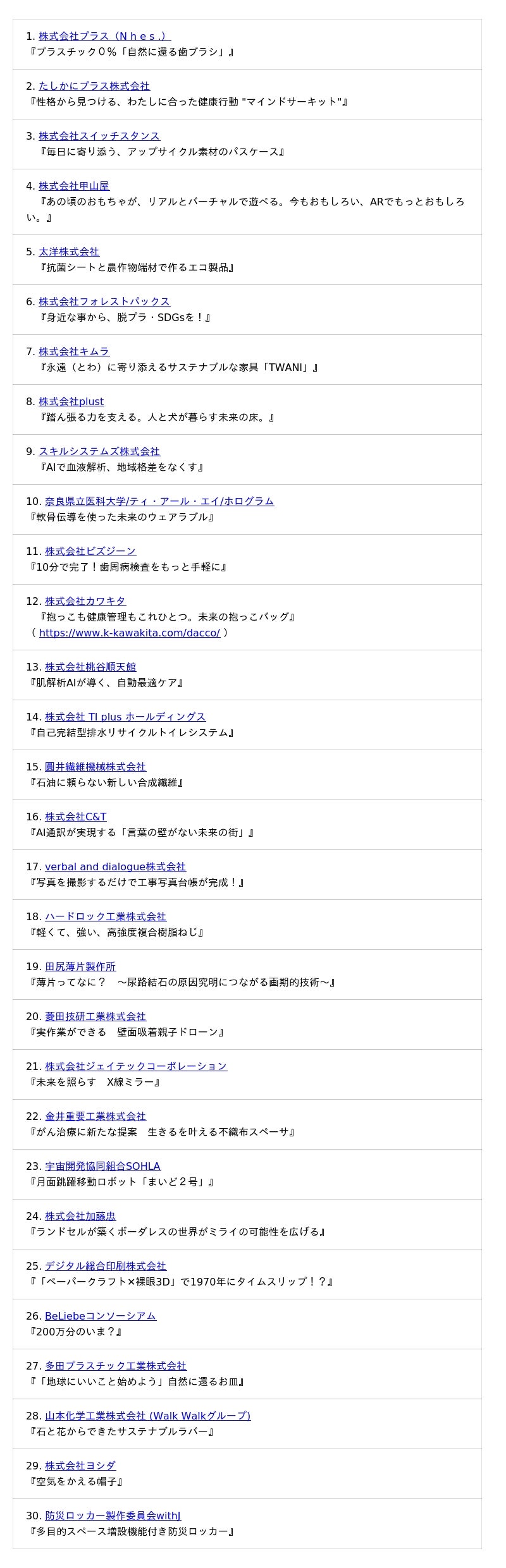 ■出展企業および内容一覧(順不同)
