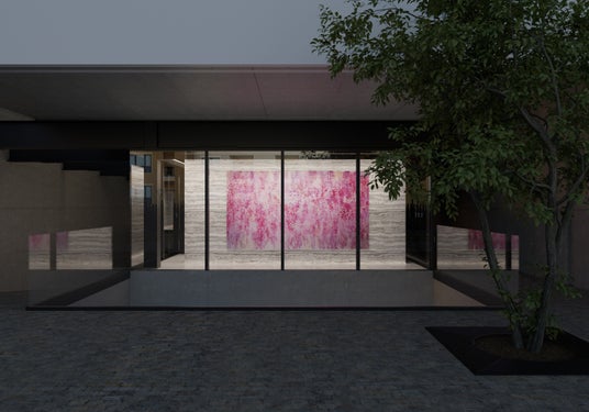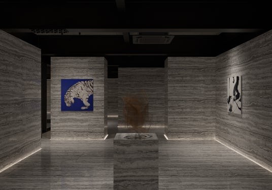 新ギャラリーの建築設計は、建築設計事務所バケラッタ主宰の森山善之氏、インテリアデザインは、新進気鋭のデザインチーム、I INが担当。イタリア産のトラバーチン(石灰岩)を用いた重厚な壁面が厳かな異空間を演出するなど、従来のホワイトキューブを超えた唯一無二のギャラリー空間が誕生しました。地上3階建てと屋上フロアの一棟からなり、最大約720平米の規模を有しています。1階はメインギャラリー、2階は通常は一般公開しないセカンドギャラリーに加え、VIP向けの応接室、プライベートビューイングルームやバーを備えています。3階はオフィスフロアで、屋上には渋谷や新宿方面の都市景観を一望できる開放的なテラスを設けました。