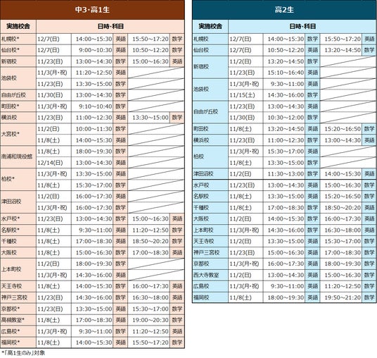 *出題は高1・2生の履修範囲に配慮します。早慶大のトライアルは英語・数学・現代文・古文での実施です。