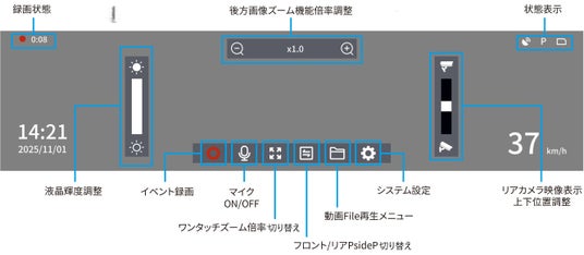 本機は、200万画素のフルHDカメラによる高画質録画に加え、OMNIVISION(R)製CMOSセンサー「PureCel(R) Plus」を搭載し、夜間走行時やトンネル内でもクリアで鮮明な映像を記録できる「ナイトサイト」にも対応。ミラー部には、隅々までクリアな後方視界を確保する11V型高輝度IPS液晶モニターを採用し、静電タッチパネルによる直感的な操作が可能です。また、フロントカメラ一体型の構造とスリムな本体形状、配線が目立ちにくい設計により、幅広い車種にすっきりと取り付けることができます。