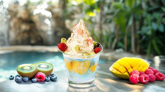 みずみずしい砂漠のオアシスをイメージした『砂漠のオアシス・フルーツポンチパフェ』