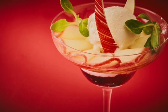 瑞々しいりんごの食感と、華やかな甘みのソースが織り成す、繊細な味わいのパルフェ