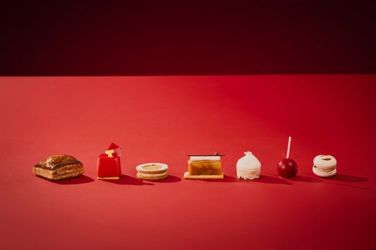 シナモン香るやわらかく煮たりんごをぎゅっと詰め込んだ、温かな「アップルパイ」は、りんごのお酒“カルヴァドス”を効かせたカスタードクリームが深みのある味わい。甘く煮詰めてキャラメリゼしたりんごがスタイリッシュに彩る「タルトタタン」、コロンと見た目が愛らしく、口に入れても驚きの「りんご飴風のりんごジュレ」、輝くような赤色の「りんごムース」など。手に取る順番に迷いそうな、華やかなスイーツがずらりと登場します。