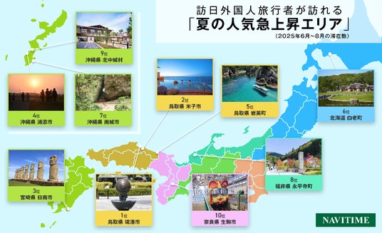 株式会社ナビタイムジャパン(代表取締役社長:大西 啓介、本社:東京都港区)のNAVITIMEデータ分析チームは、訪日外国人観光客向けのナビゲーションアプリ『Japan Travel by NAVITIME』の利用状況から、2025年の夏に訪日外国人旅行者の滞在が増加している地域の分析結果を発表いたします。