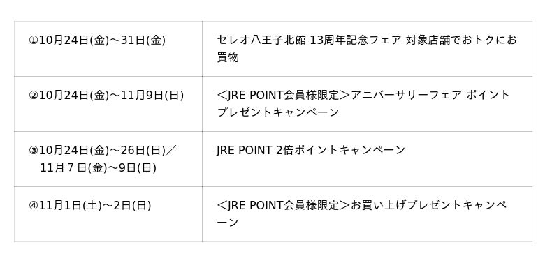 〇JR東日本グループの株式会社JR中央線コミュニティデザイン(本社:東京都小金井市/代表取締役社長:小澤 裕)の運営するセレオ八王子は、2025年10月25日(土)に開業13周年を迎えます。