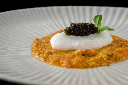 ふわりと軽い卵白に、濃厚な蟹の旨味とキャビアの上品な塩味が溶け合い、口の中でとろけるようなハーモニーを奏でる、まさに至高のマリアージュ。新感覚の上海料理が生み出す、贅沢な世界をご体験ください。