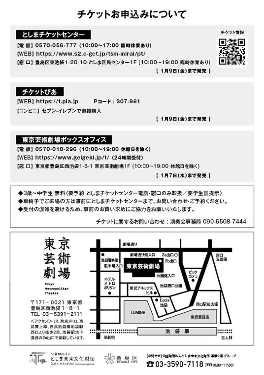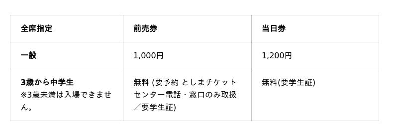 ※車椅子でご来場の方は事前にとしまチケットセンターまで、お問合せ・ご予約ください。