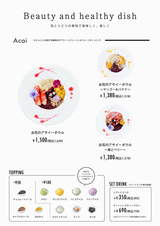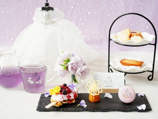 メニューには、美と健康を意識したエディブルフラワーがのった鮮やかなアサイーボウルや、名物のクロッフルを始め、写真映えもするクロッフルプレートなどの人気メニューが大阪でも展開されます。 ドリンクはオリジナルドレスアップティーを使用したティーカクテルやミルクティー、フレッシュなフラッペなど。また、24種類のオリジナルドレスアップティーを存分に楽しめるティーハーブティープランもレギュラーメニューに。ティーハーブティープランはミニ花瓶を飾りながらお好きな紅茶をお楽しみいただけます。 華やかなドレスとお花に囲まれた幻想的な空間で、特別な時間をお届けする『DRESSY CAFE』。 美しさとときめきが詰まった魔法の空間をぜひ体験してください。
