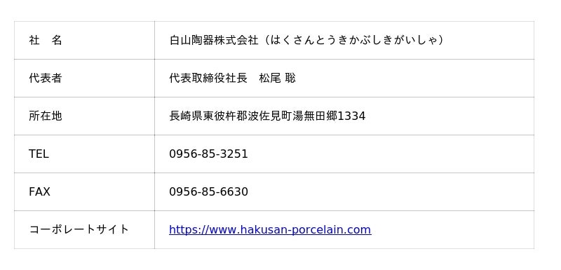 白山陶器は1779年に長崎県波佐見町中尾郷で創業した窯元を起源とし、1951年に有限会社白山製陶所、1958年に白山陶器株式会社が設立され今日に至ります。「なによりも使いやすく、生活になじむこと」をテーマに、デザイン開発から成型・絵付・施釉・焼成までの全工程を自社工場で一貫生産。良質な天草陶石を用いて、優れたデザインと確かな技術で時代を超えてスタンダードであり続ける「暮らしの器」を製造しています。