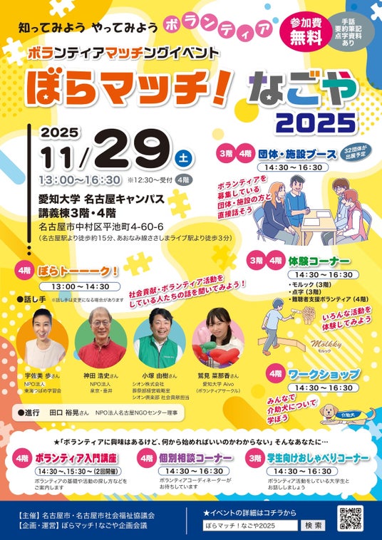 ●イベントの詳細・申込については、下記名古屋市市民活動推進センターのホームページをご覧ください。