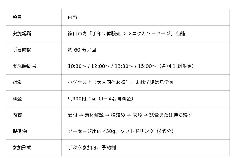 - 視覚的な楽しさ:腸詰めの工程や完成したソーセージ、親子の笑顔など写真・動画映え抜群。