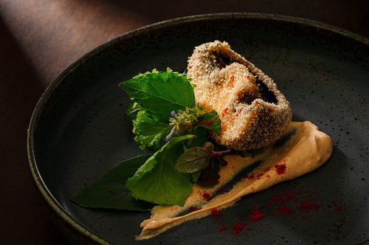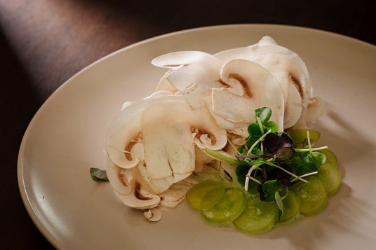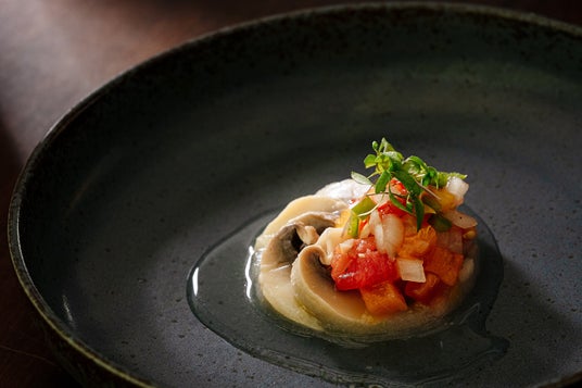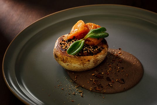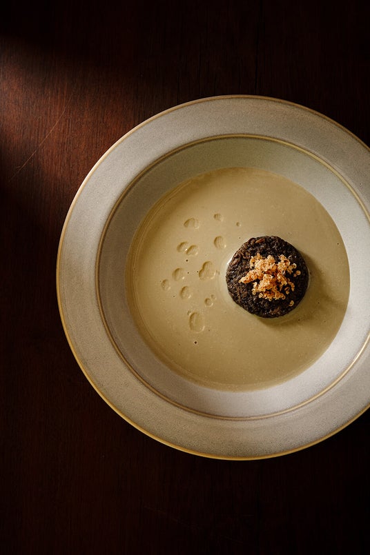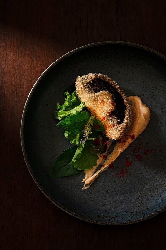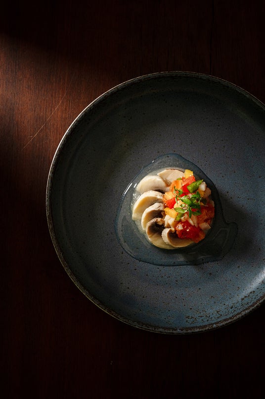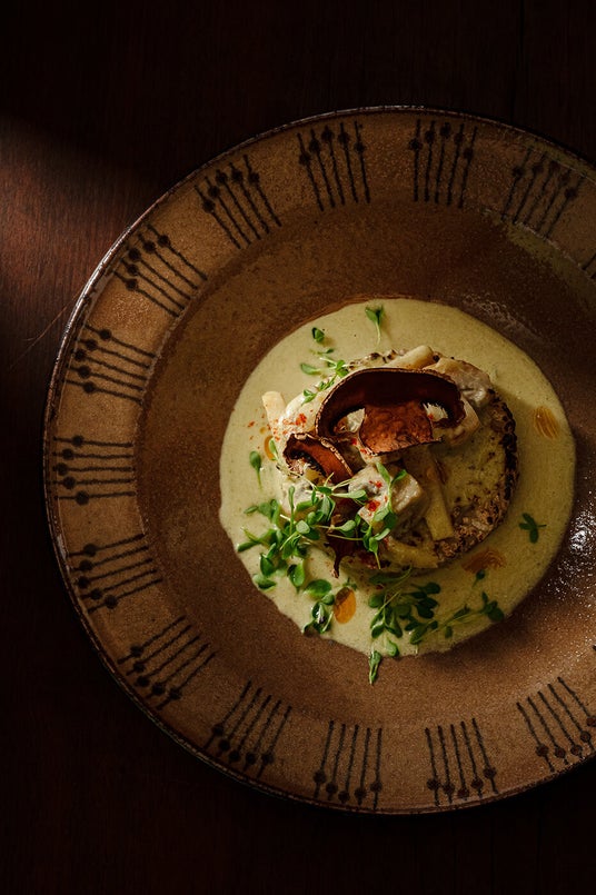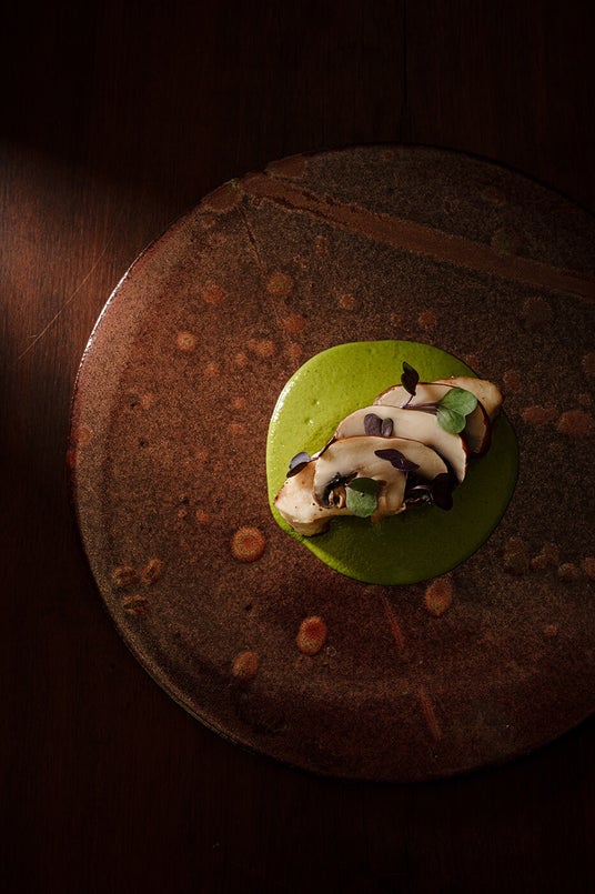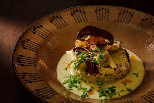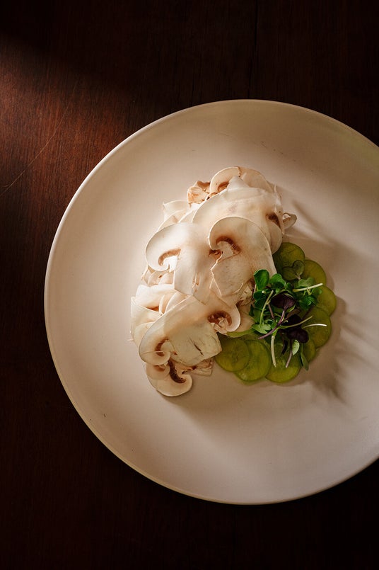 世界で唯一のマッシュルーム料理専門店の同店は、国外からわざわざ足を運ぶゲストも少なくない。「発見・驚き・感動」をコンセプトにしたメニューは「マッシュルームのヴィーガンコース」とメインに肉を使用した「マッシュルームのスペシャルコース」(¥ 8,800~)をラインナップ。メイン以外の料理は同じマッシュルームのヴィーガン料理なので、食生活が異なる友人やパートナー同士で足を運んでも、一緒においしさを分かちあえるのがうれしい。