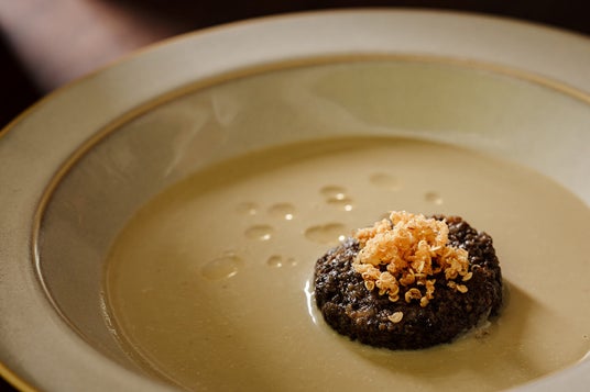 11月限定ディナー スペシャルコース「マッシュルームとそら豆のポタージュ フライドキヌア」