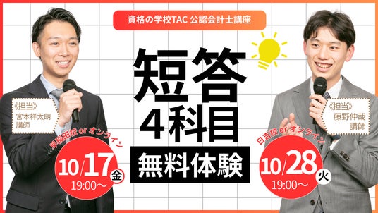 【資格の学校TAC】10/17(金)or 10/28(火)「公認会計士試験 短答4科目無料体験」《えらべる参加方法》