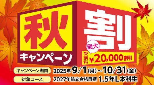 受講料最大¥20,000割引2025年秋に学習開始する皆さまをトコトン応援!