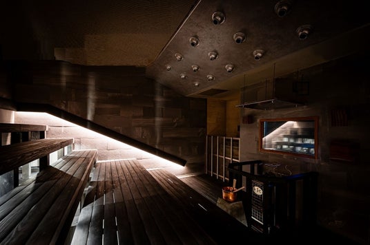 「墨サウナ」は、煤で黒く染まったスモークサウナの空間を、日本の伝統的な“漆黒美”で表現。『奈良墨』と、防腐・防水・防虫・消臭・抗菌・抗ウイルス効果があるとされる『渋墨』を調合し、唯一無二のサウナ体験を実現しています。また、フィンランドサウナの核心であるロウリュの法則**に基づいて設計され、息苦しさを抑えた快適な体験が楽しめる“日本初”のサウナとして注目されています。