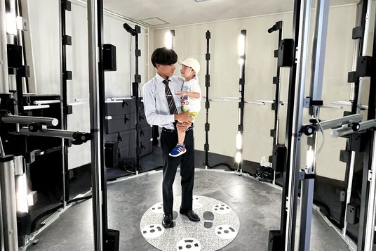 撮影後に付与される専用QRコードを読み込むと、スマートフォン上で自分の3Dデータを使った拡張現実コンテンツを体験可能。現実では撮れないツーショットやユニークなポーズを、スマホ画面上で楽しむことができます。