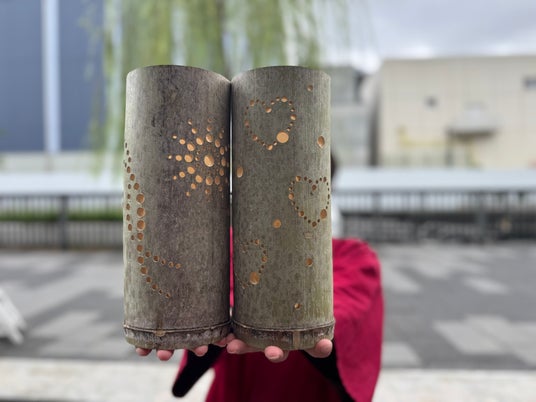 - 概要:制作いただいた竹あかり2本のうち、1本は皆様の作品としてイベント会場の隅田公園に展示され、下町の夜を実際に灯す光の一部となります。もう1本は、旅の記念としてお持ち帰りいただけます。