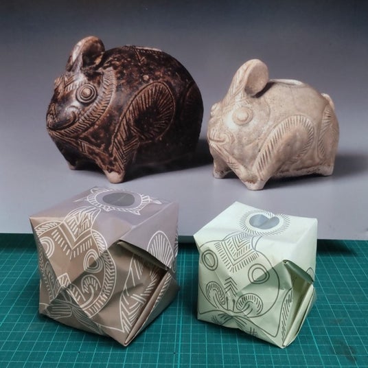 町田市立博物館の所蔵作品をモチーフにした折り紙を、学芸員と一緒に折るワークショップです。折り紙のモチーフになった作品は、クメール王国で12~13世紀に作られた陶器の兔形壺です。作った折り紙はその場でお持ち帰りいただけます。