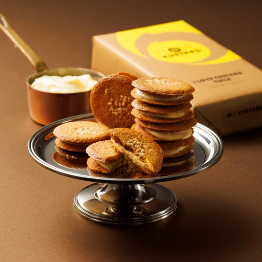 カスタード風味のチュイールにやさしい甘さのチョコレートをサンドした「アイラブカスタードチュイール」。サクサクとした軽やかな食感とともに、ふんわり広がるカスタードの香りが、ふと頬をゆるめるようなひとときを届けます。