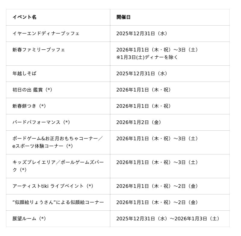 営業期間:2025年12月31日(水)~2026年1月3日(土)