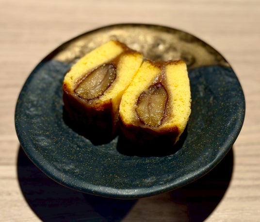長崎カステラに自家製マロンクリームと栗の甘露煮を挟んだ一品です。