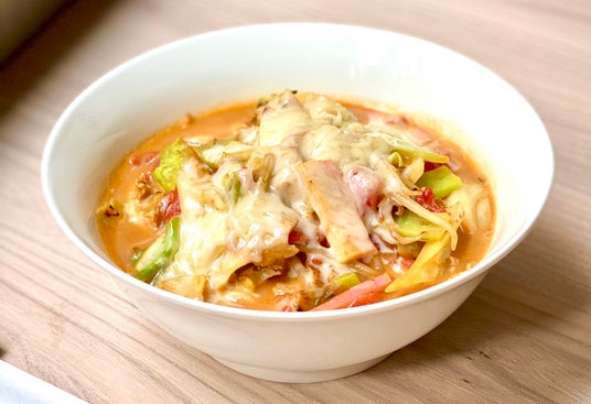 チーズトマトカレーちゃんぽんトマトの酸味、カレーの刺激、チーズのコクが溶け合う究極の一杯!