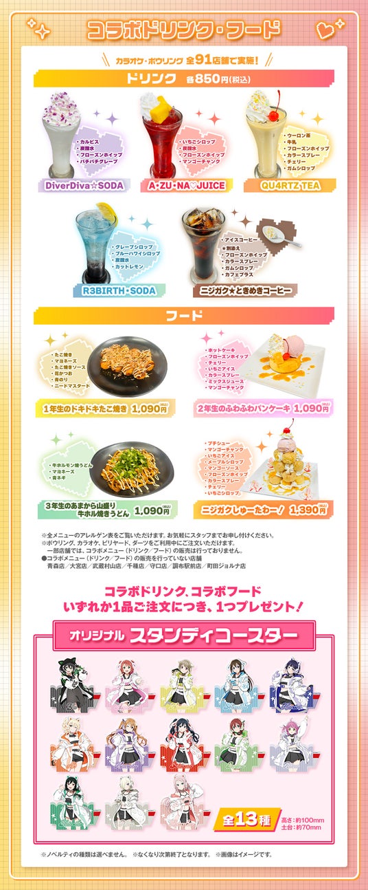 カラオケコラボルームやコラボパックのほか、コラボメニュー、オリジナルグッズの販売を行います。