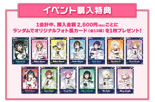 ラウンドワン店頭にて、コラボグッズを1会計につき税込2,500円ご購入ごとに、オリジナルフォト風カード(全13種)をランダムで1枚プレゼント!