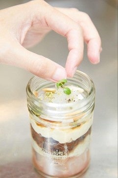 果物の皮など不可食部分は乾燥させて堆肥化し、下北沢でパフェに使用するハーブを育成。