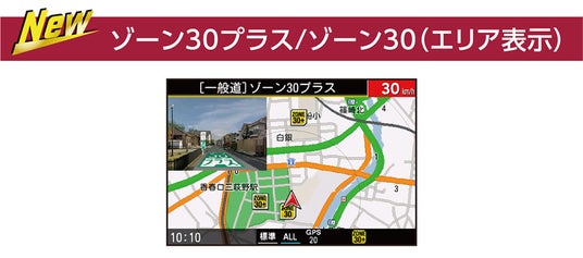 市街地図やゾーン30のエリア表示、地図に沿って警告や案内の表示が可能です。