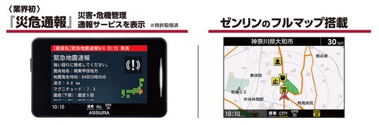 政府機関が発令する地震・津波などの災害情報、『災危通報』を表示、音声でもお知らせします。