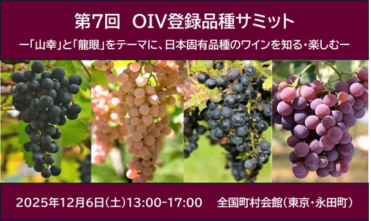 一般社団法人OIV登録品種協議会(所在地:東京都/代表理事:松尾英理子)は、2025年12月6日(土)、全国町村会館にて「第7回OIV登録品種サミット」を開催いたします。OIV※(国際ブドウ・ワイン機構)に登録された日本固有の品種を軸に、その価値や未来を多様な立場から考える本サミットは、研究者・生産者・流通、そしてワイン愛好家が一堂に会する年に一度のイベントです。