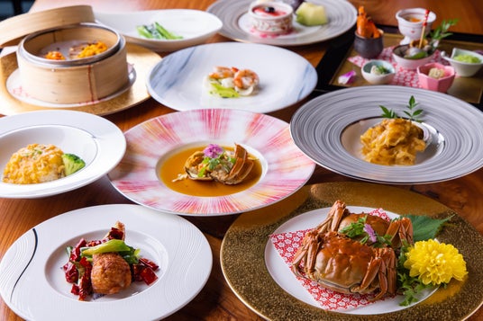 上海蟹コース「贅沢プラン」高級食材と上海蟹の饗宴を味わう特別コース。鮑やフカヒレ尾びれとの豪華な競演、蟹味噌あんかけチャーハンまで含む全9品。銀座でしか味わえない贅沢なひとときを演出します。