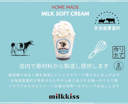 くちの中でトロける、"冬だけの濃厚"milkkissソフトクリームをお楽しみいただけます。