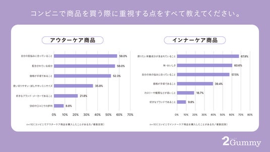 働く女性にとって「コンビニ美容」は、外側からのケアにとどまらず、体の内側のことも意識した商品選びの習慣が広がっていることが分かる結果となりました。