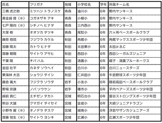 (※)は楽天イーグルスアカデミー ベースボールスクール所属選手