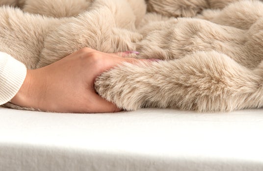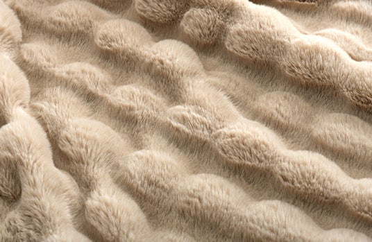 本製品はうさぎの毛のような長さと柔らかさをもつ30mmのロングパイル生地を採用しています。指先がやさしく沈み込むような繊細な柔らかさで、しっとりと滑らかな肌触りです。