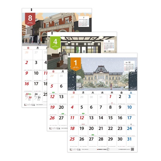 2026年版カレンダー「京都・滋賀 暮らしに息づくモダン建築」では、観光名所ではなく、人々の日常生活に息づくモダン建築を取り上げています。京都市出身のイラストレーター・サヌキナオヤさんが12点を描き下ろし、地域に根付いた建築の美しさや温もりを鮮やかに表現しました。