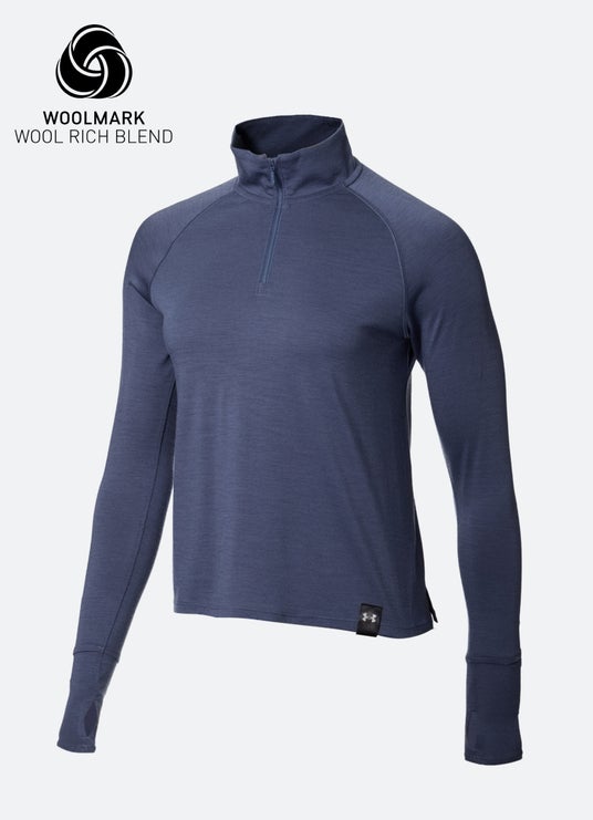 アンダーアーマーのテクノロジーとメリノウールの極上の着心地と機能性が融合。“アーマー加工”を施した糸とメリノウールの組み合わせにより、ウールの防臭性・温度調節機能に汗速乾性・ストレッチ性・耐久性を兼ね備えた新素材が誕生しました。